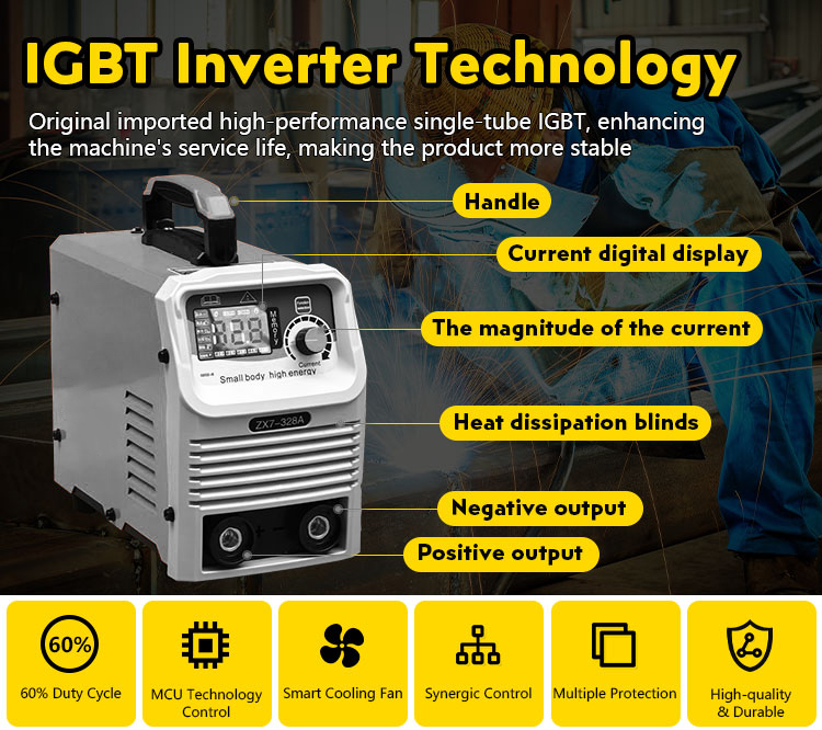 Designed for heavy industrial applications, this MMA inverter welder delivers high current stability, low spatter and continuous duty cycle. Built with advanced IGBT technology, it ensures consistent performance in long-hour welding jobs.